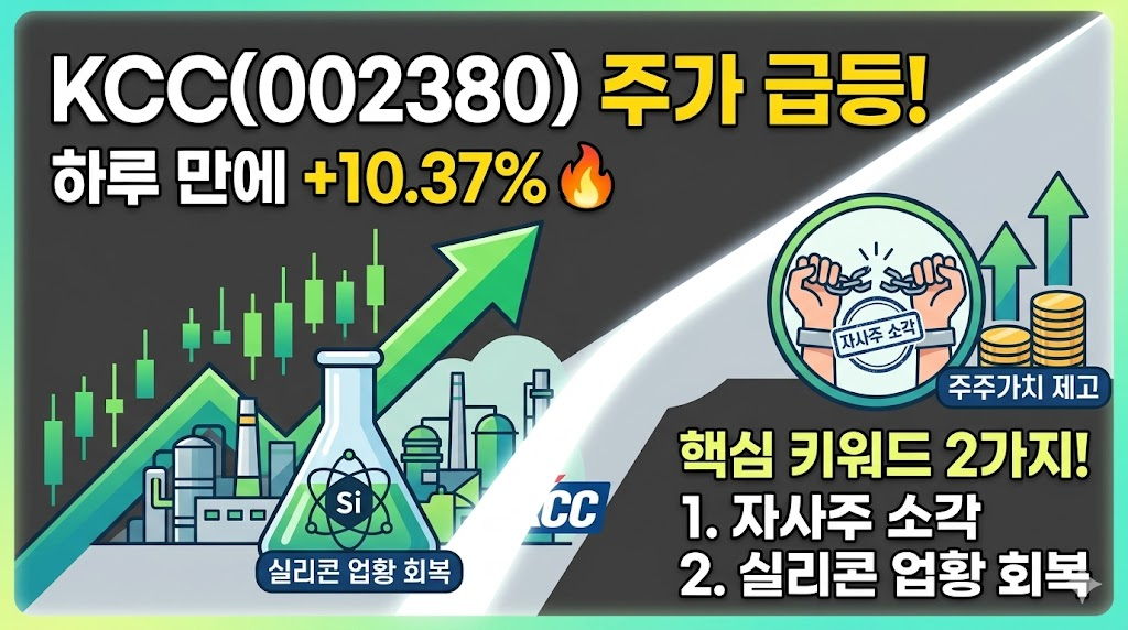 📰 최근 KCC(002380)와 관련하여 쏟아지는 뉴스들은 크게 세 가지 테마로 묶을 수 있습니다. 자사주 소각, 실리콘 업황 회복, 그리고 삼성물산 지분 활용이 바로 그것입니다. 하나씩 정리해보겠습니다.