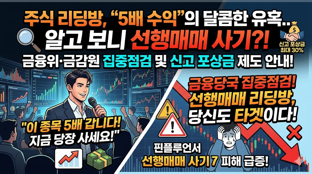 "이 종목 5배 갑니다. 지금 당장 사세요!" 텔레그램이나 유튜브에서 한 번쯤 이런 문구를 접해본 적 있으신가요? 화려한 수익 인증과 자신감 넘치는 말투에 홀린 듯 매수 버튼을 눌렀다가 주가가 곤두박질치는 경험을 한 개인 투자자들이 늘고 있습니다. 이른바 주식 리딩방을 운영하는 핀플루언서(금융+인플루언서)들의 선행매매 사기 피해가 심각한 수준에 이른 것입니다.