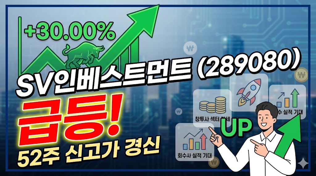 💡 이번 포스팅에서는 SV인베스트먼트(289080)의 사업 구조와 재무 현황, 최근 주요 뉴스, 그리고 개인 투자자 입장에서의 투자 포인트를 하나하나 짚어보겠습니다. 급등 후 추격 매수가 과연 옳은 선택인지, 냉정하게 분석해봅시다.