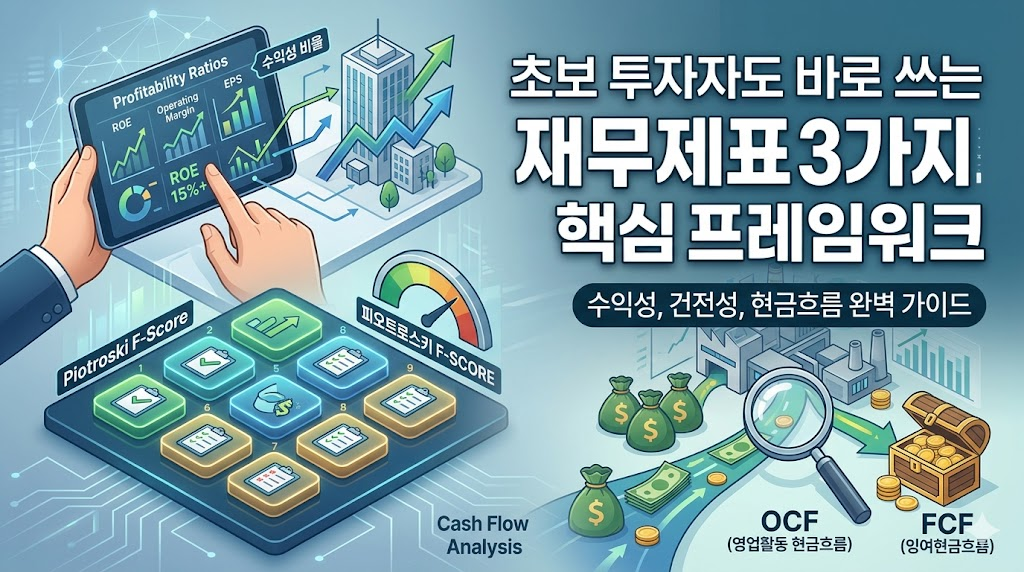 이 글에서는 주식 고수들이 실전 종목 선별 시 반드시 거치는 3가지 재무제표 분석 핵심 프레임워크를 체계적으로 정리합니다. 수익성 지표 비교 분석, 피오트로스키 F-Score 스크리닝, 그리고 현금흐름 중심의 가치투자 접근법까지 — 초보 투자자도 즉시 적용할 수 있는 실전 가이드를 제공합니다.