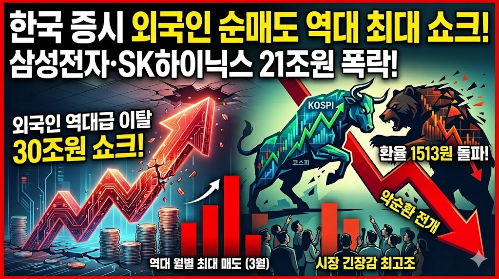 2026년 3월, 한국 증시가 유례없는 외국인 자금 이탈 쇼크에 휘청이고 있습니다. 외국인 투자자들은 3월 한 달간 코스피에서 역대 월별 최대치인 약 30조원에 달하는 순매도를 기록했으며, 그 중심에는 대한민국 반도체 대표주인 삼성전자와 SK하이닉스가 있습니다. 두 종목에서만 무려 21조원 이상의 외국인 자금이 빠져나간 것입니다.