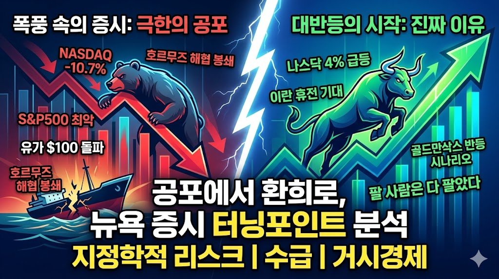 지정학적 리스크, 유가 충격, 수급 구조, 거시경제 지표까지—이 네 가지 축을 중심으로 뉴욕 증시 대반등의 진짜 이유를 분석합니다.