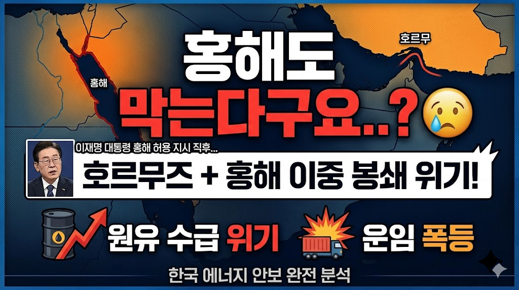 결과적으로 호르무즈 해협 봉쇄 + 홍해 봉쇄 위협이라는 ‘이중 봉쇄’ 시나리오가 현실화되면서 한국 에너지 안보가 최악의 상황에 놓이게 되었습니다.